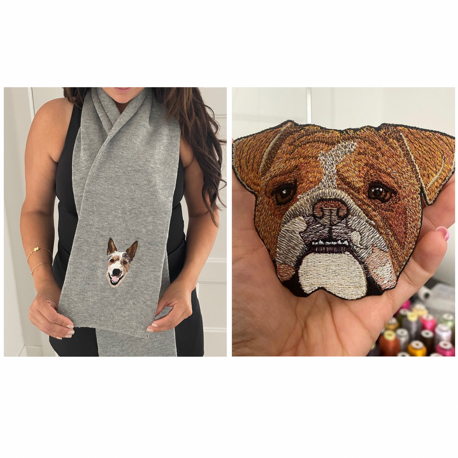 Salut les amis ! Nous sommes Susana et Georgina, nous sommes sœurs et graphistes. Nous avons lancé Abicoshops en septembre 2021. Nous voulions créer quelque chose de vraiment spécial pour chaque parent de chien et c'est ainsi qu'Abicoshops a vu le jour. Nous avons nommé Abicoshops en l'honneur d'Abi, notre bouledogue français senior de 11 ans. Chaque pièce est illustrée à la main, à partir de la photo de votre animal de compagnie préféré. Comme nous fabriquons chaque pièce sur mesure, il faut environ 2 à 3 heures pour créer chaque détail de votre animal de compagnie. Nous proposons des illustrations d'animaux de compagnie détaillées de la plus haute qualité et des portraits d'animaux brodés pour les parents d'animaux de compagnie. Dès que nous aurons terminé votre œuvre d'art, nous partagerons une épreuve pour votre approbation ou travaillerons ensemble sur une révision, puis votre commande sera transférée vers notre chaîne de production pour être imprimée ou brodée et vous être expédiée.